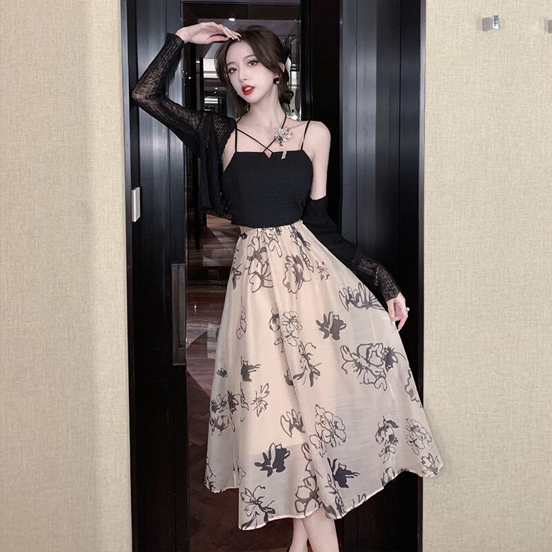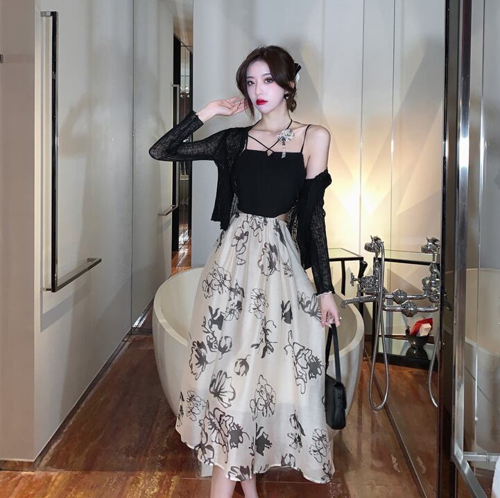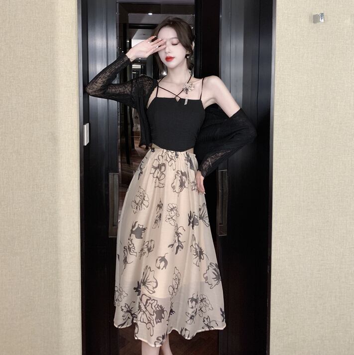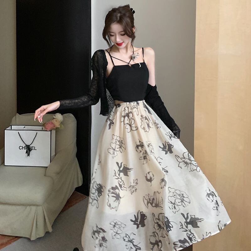 透け感たっぷりな薄手のカーディガントップスとワンピースのセットアップ♪