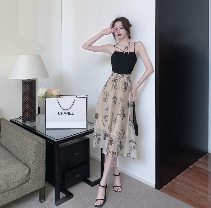 サイドをちょっぴりカットしたノースリーブワンピースは花柄を盛り込んで…◎
