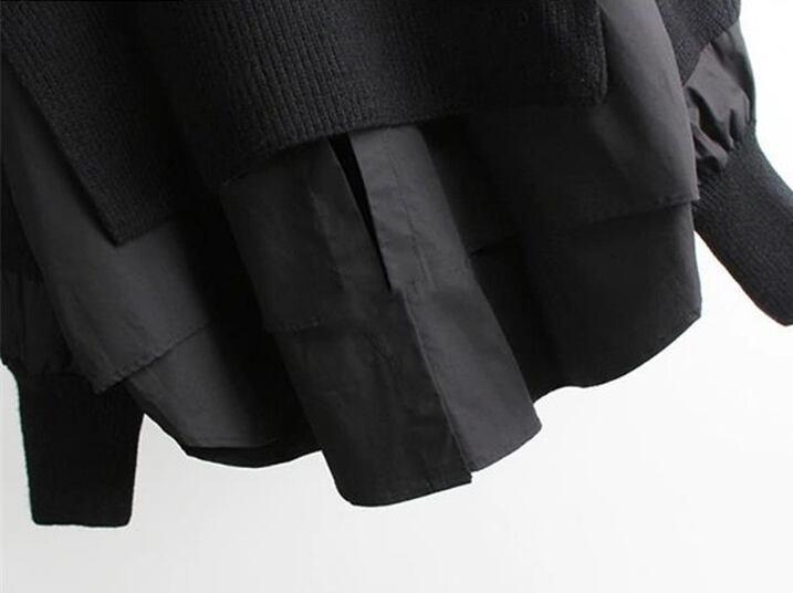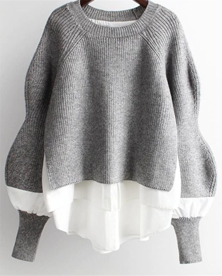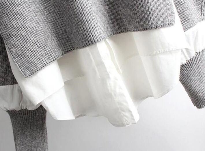 ゆるニットにシャツを組み合わせたドッキングデザインのトップスが登場!