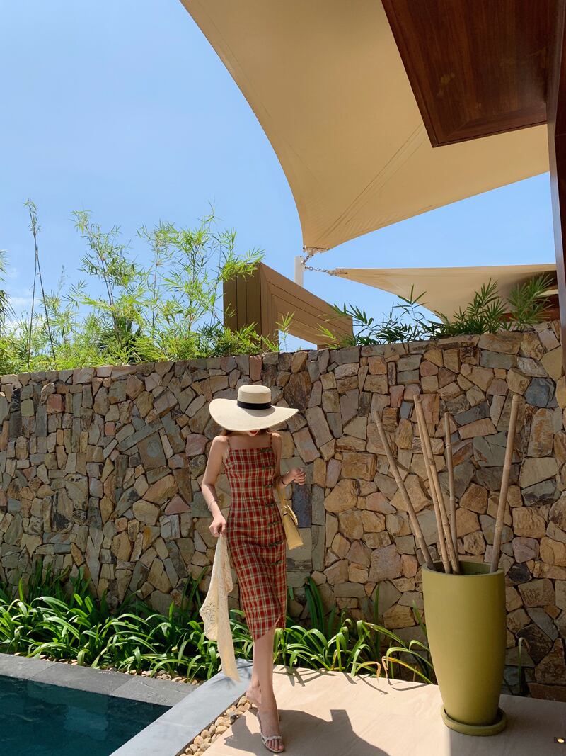 セミタイトなシルエットで仕上げたチャイナ風キャミワンピース。