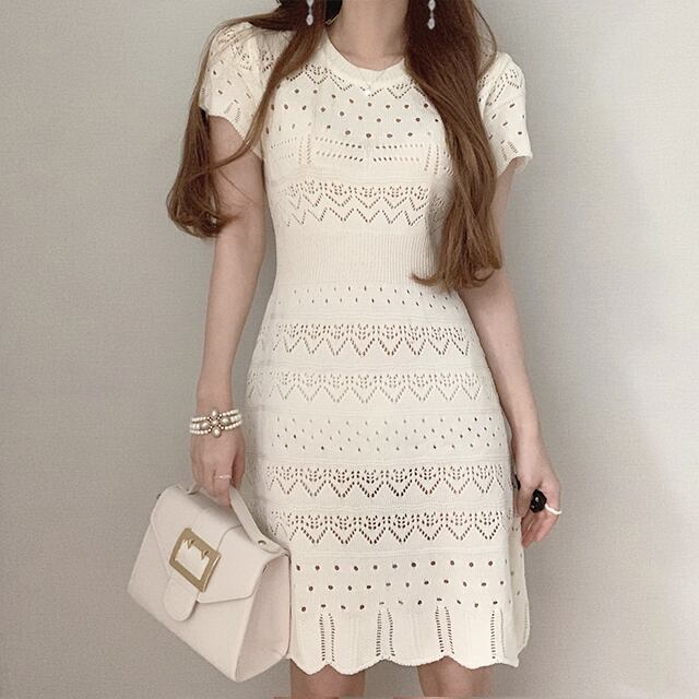透かしレースでナチュラルな雰囲気を醸し出す半袖ミニ丈のワンピースです!