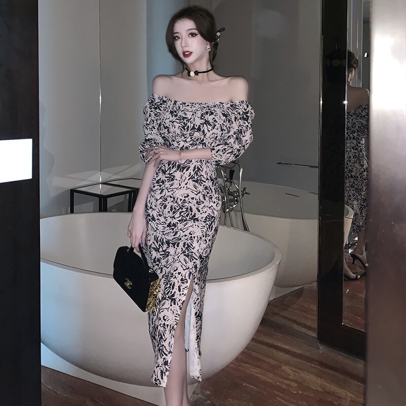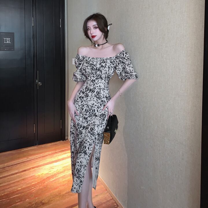 ルーズショルダーでオフショルとしても着こなせるミモレ丈のワンピースです♪