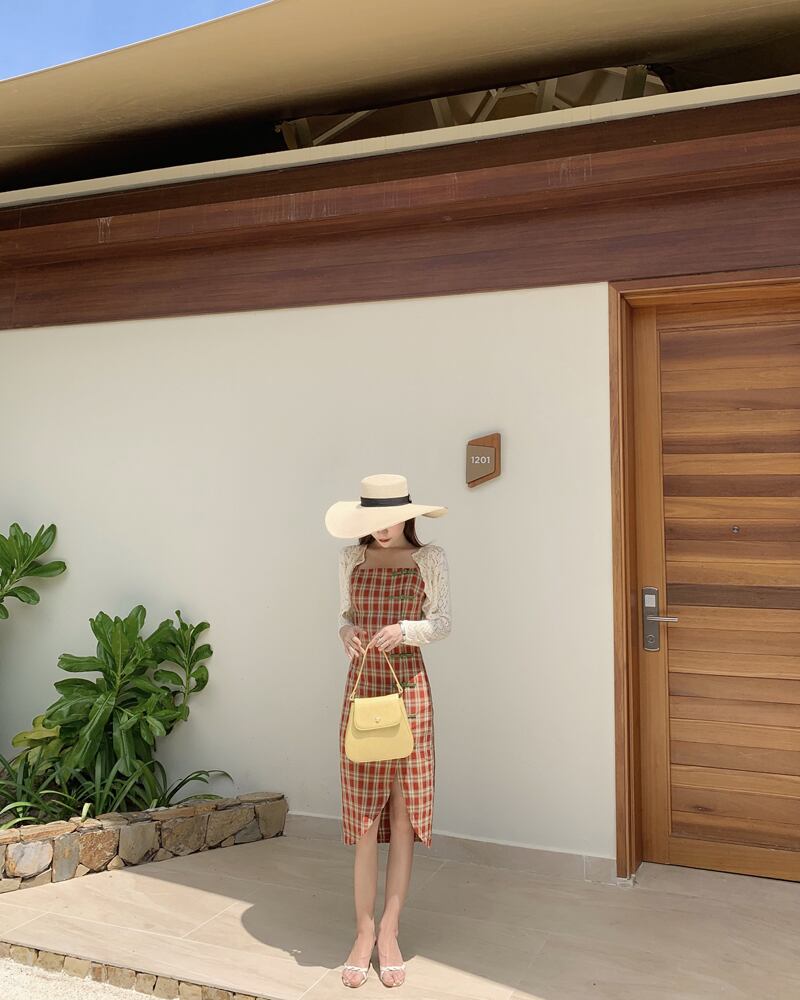 【即納品】チャイナディティールが可愛い♪スリット チェック柄 キャミワンピース