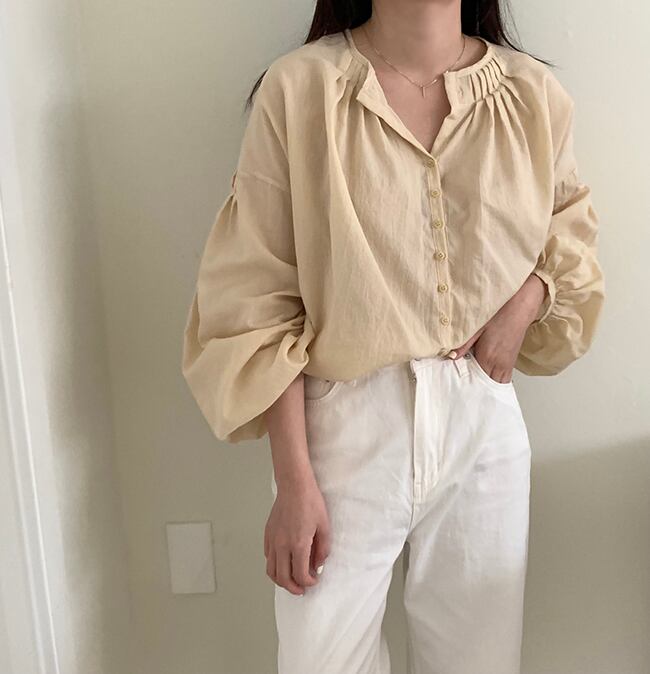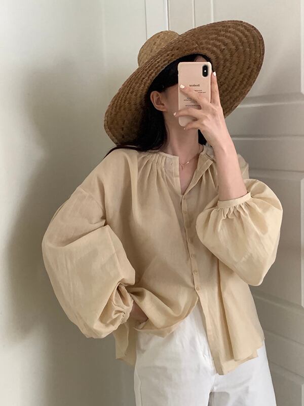 ふんわり広がるボリューム袖がトレンドやおしゃれを感じさせるトップスです☆