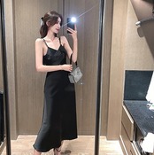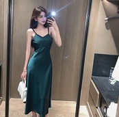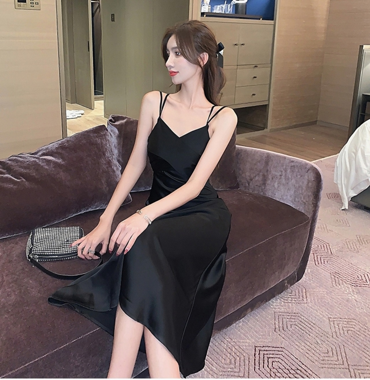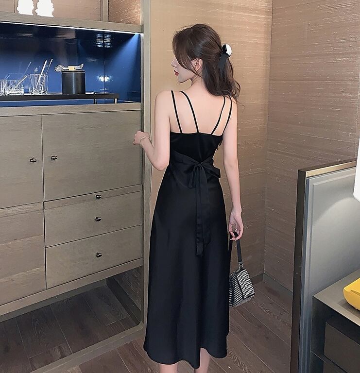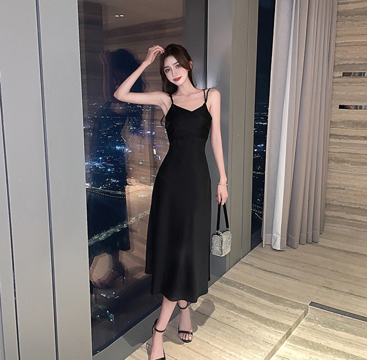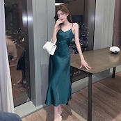 ダブルストラピーバックで大胆な涼やかさとエレガントさををアピールするワンピース。フロントはクロスデザインでバストラインに惹かれる美しいシルエットに。