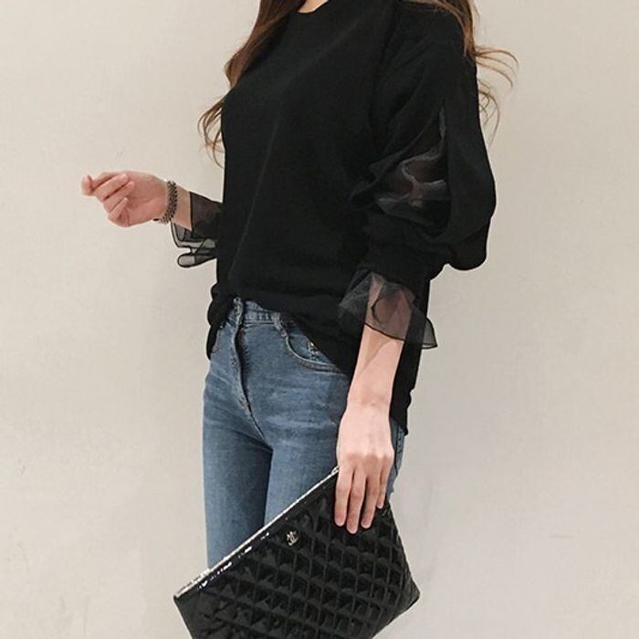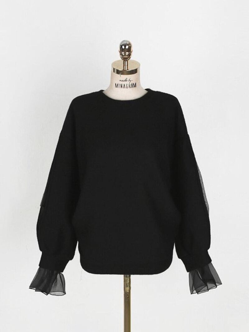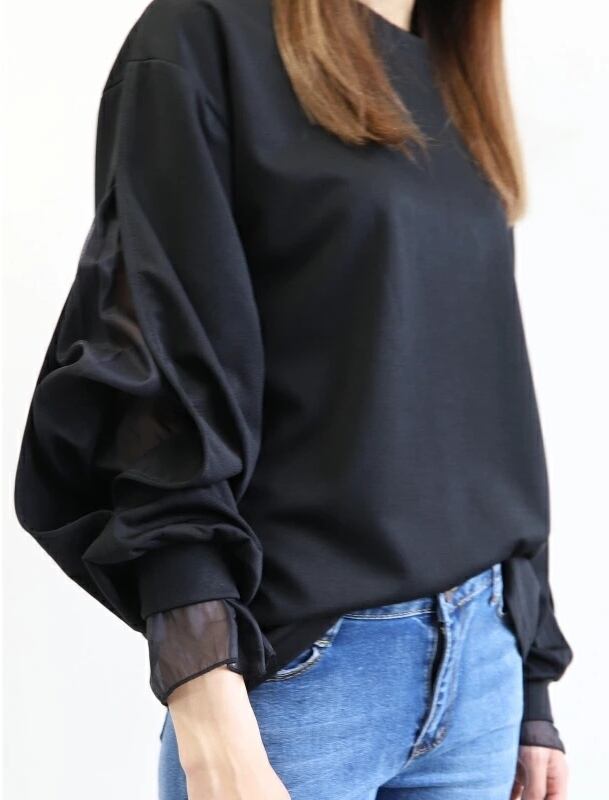 袖スリットから覗くチュールが可愛いカジュアルトレーナーのご紹介です♪