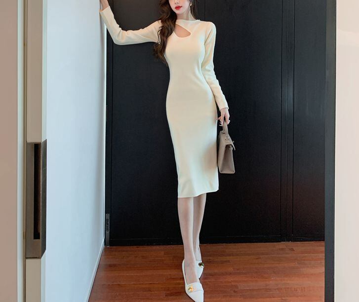 ちょっとしたおよばれにもセレクトできそうなタイトなシルエットがポイント。