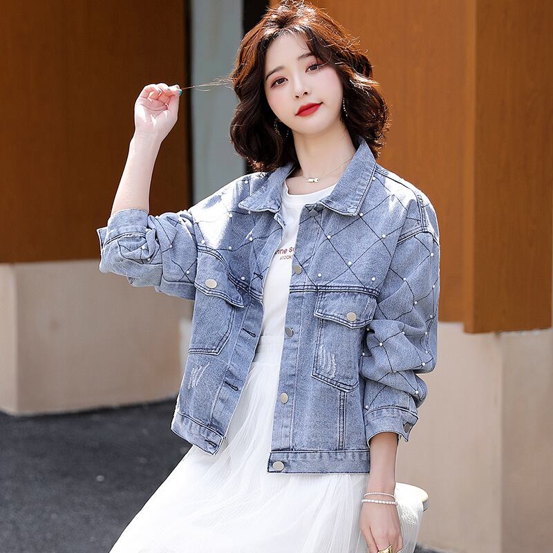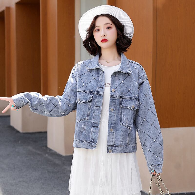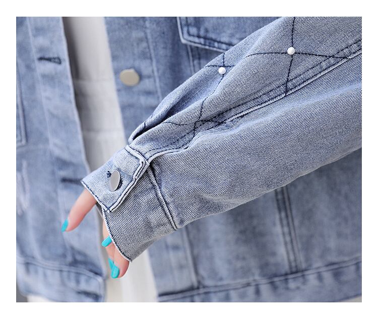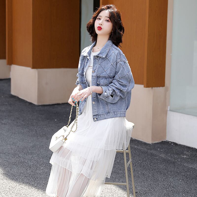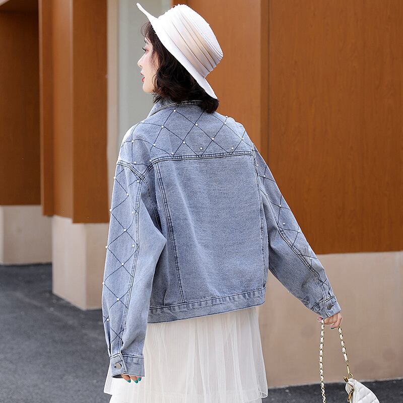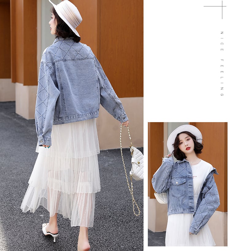 淡いブルーとマッチしたオフコーデにさっと羽織りたいおしゃれアウターです。