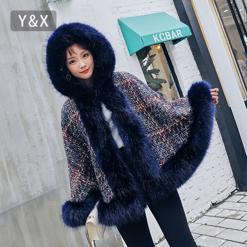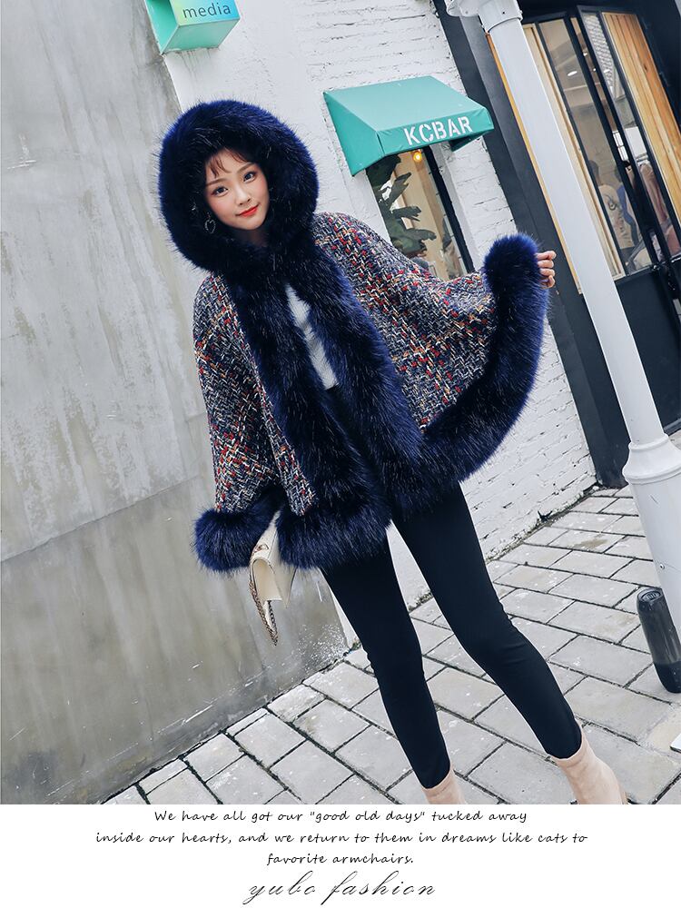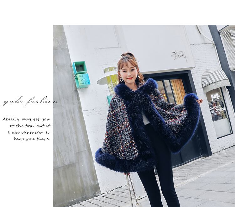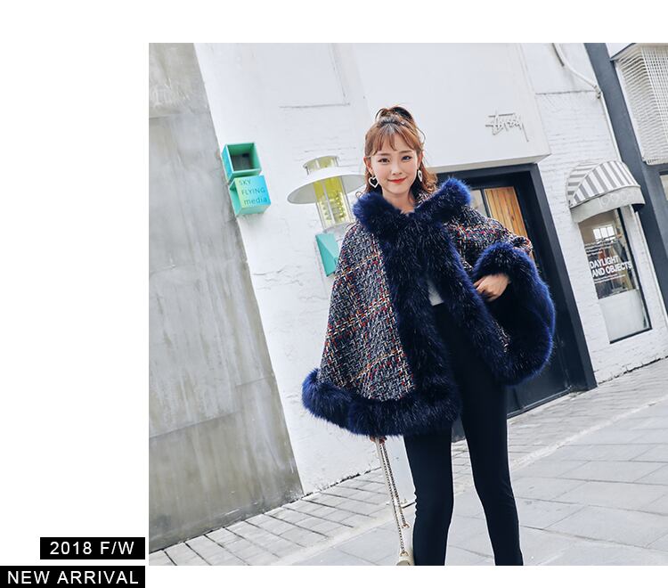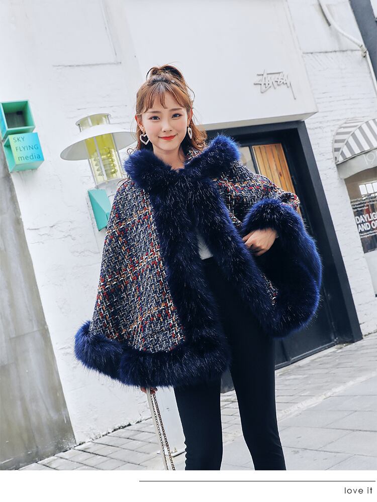 ファーとツイードをミックスしたオーバーサイズのポンチョが登場しました☆
