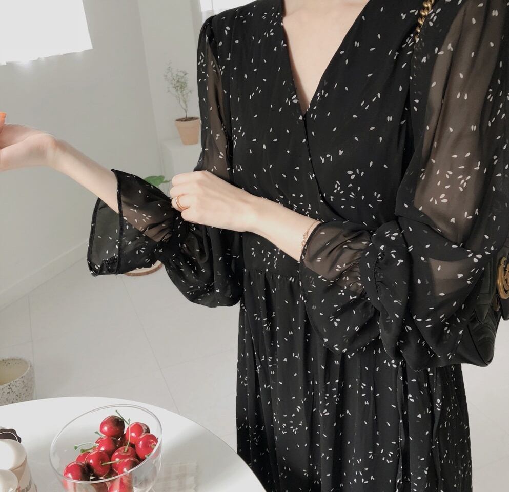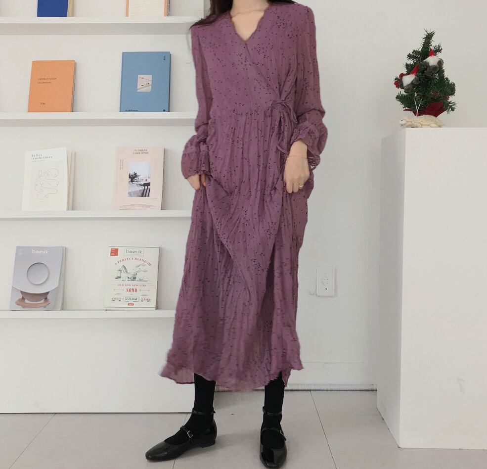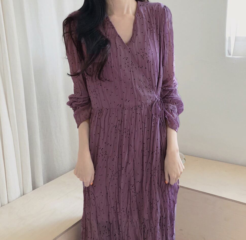 【即納品】くしゅっとした質感がカワイイ♪ラップVネック ロングワンピース