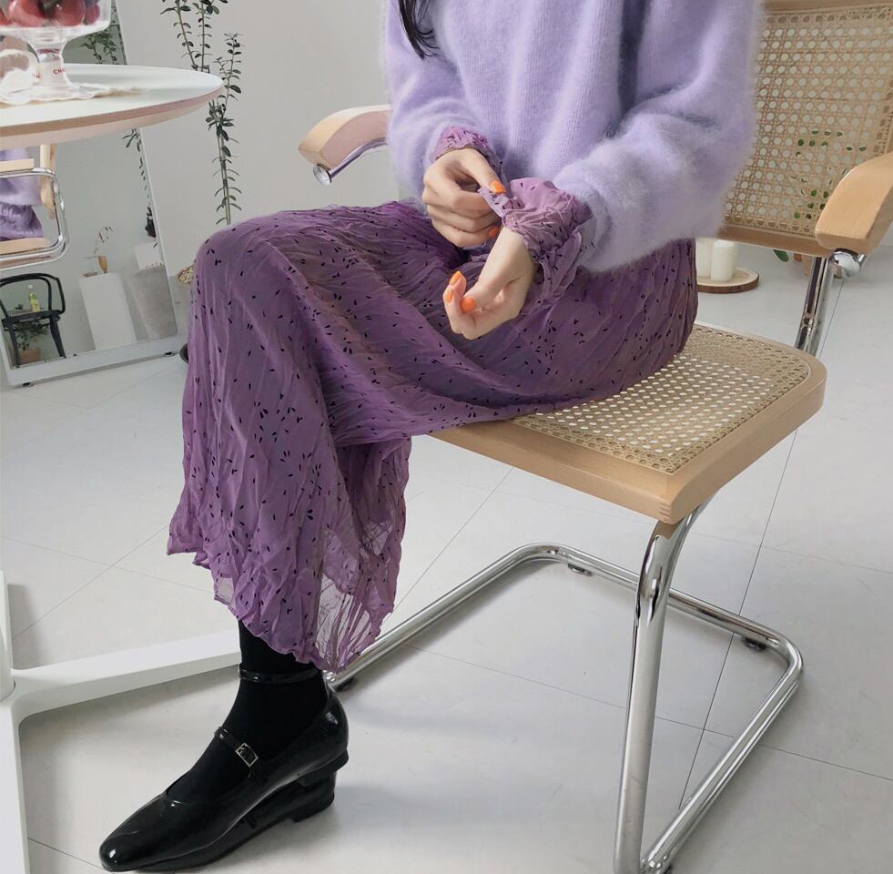 シワ加工をあしらったくしゅっと感のある素材が可愛いロングワンピースです。