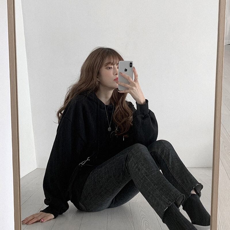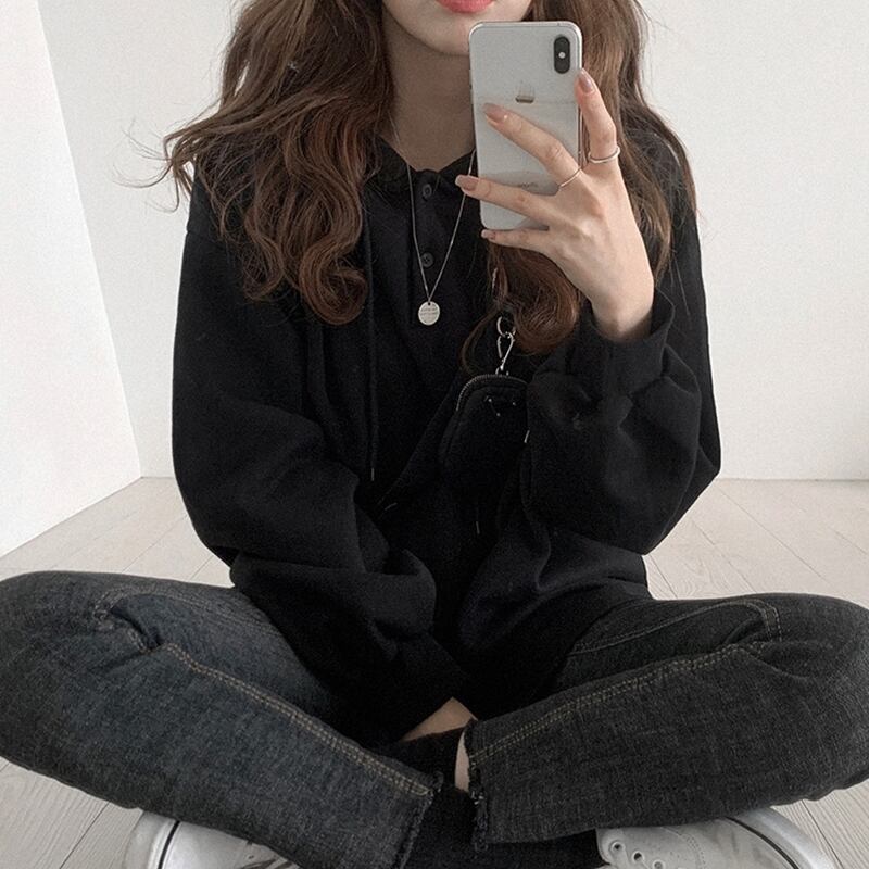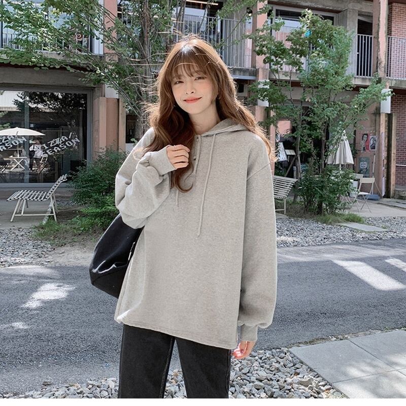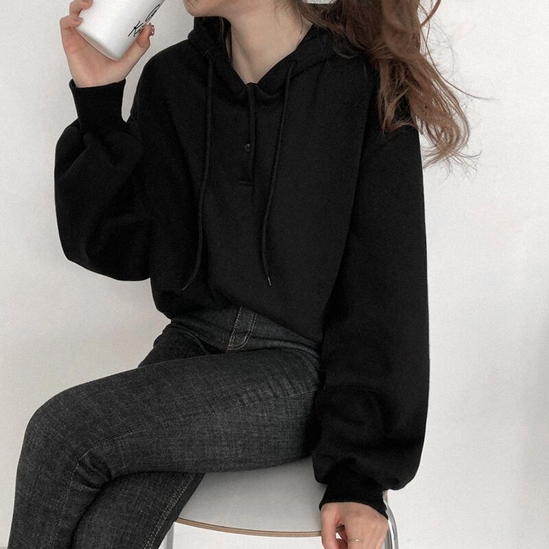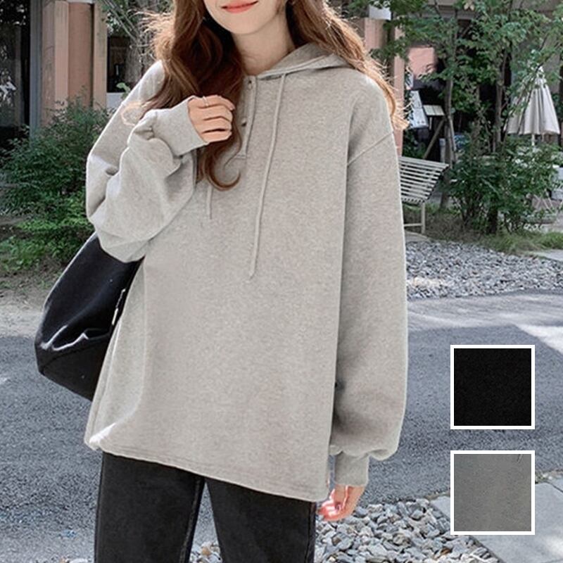 ミディロング丈でヒップラインをカバーする無地デザインのフーディトップスです☆