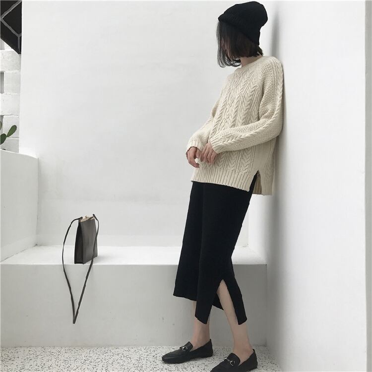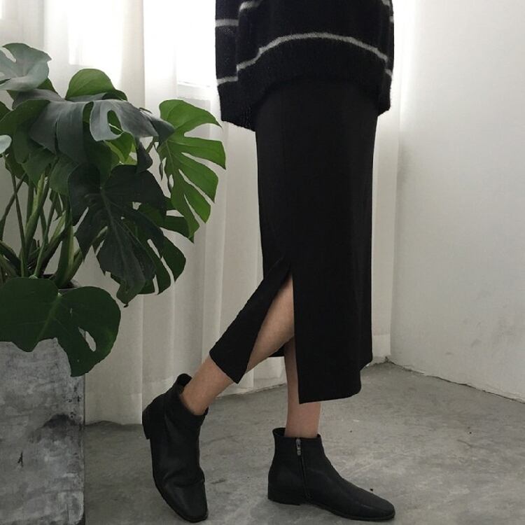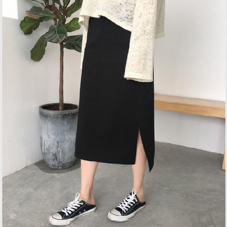シンプルな無地デザインで仕上げたミモレ丈のスカートです♪
