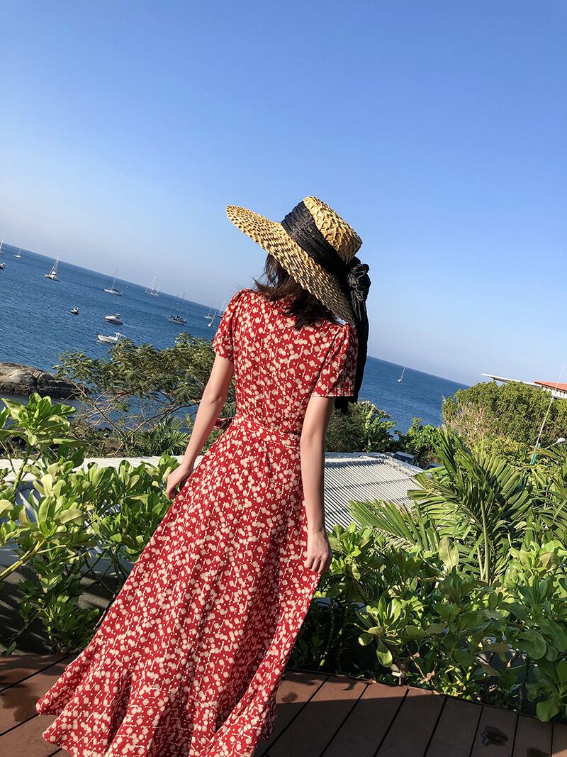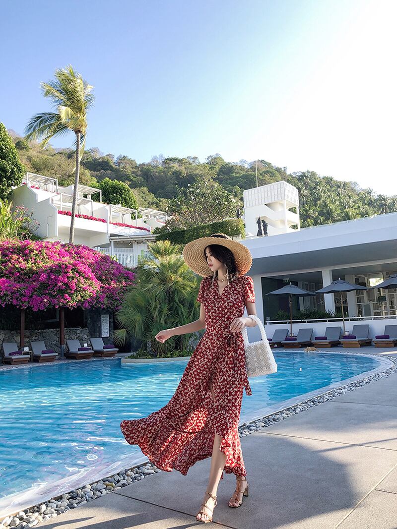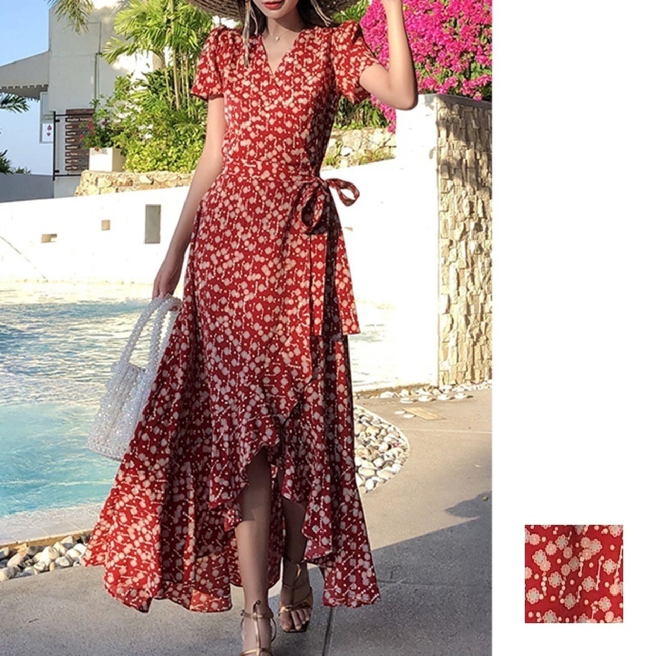 どこかレトロモダンな花柄の半袖ワンピースのご紹介です♪