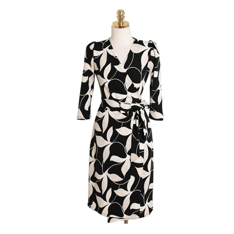 レトロライクな花柄がおしゃれなひざ丈のワンピースです。