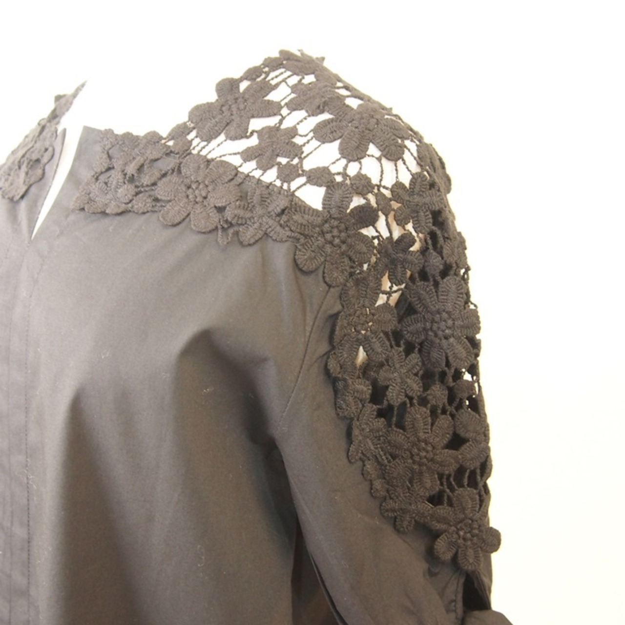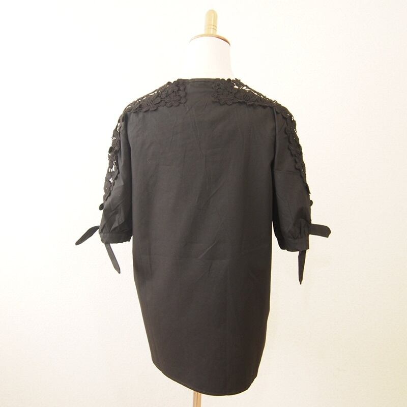 ロマンチックな透かし織りレース切替スリーブがかわいい