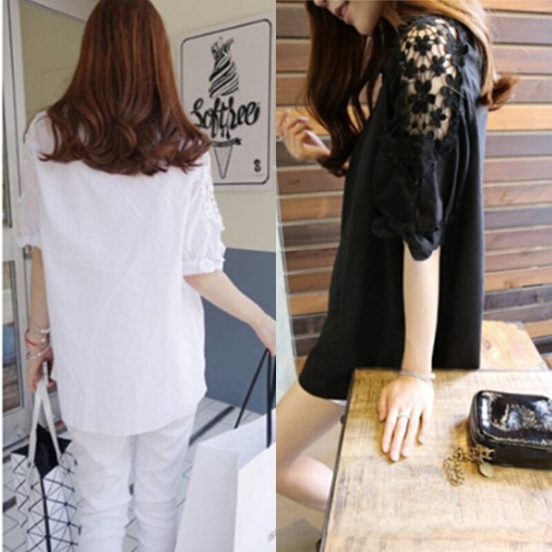 透かし織り レース 切り替え スリーブ ビッグ Tシャツ カジュアル ガーリー