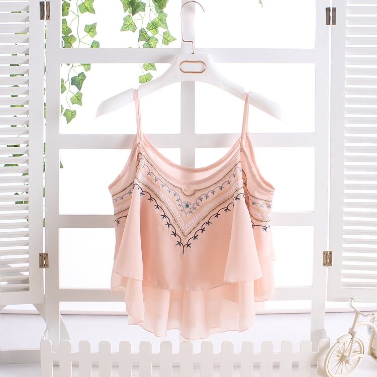レイヤード シフォン風 フォークロア ビスチェ キャミソール フェミニン