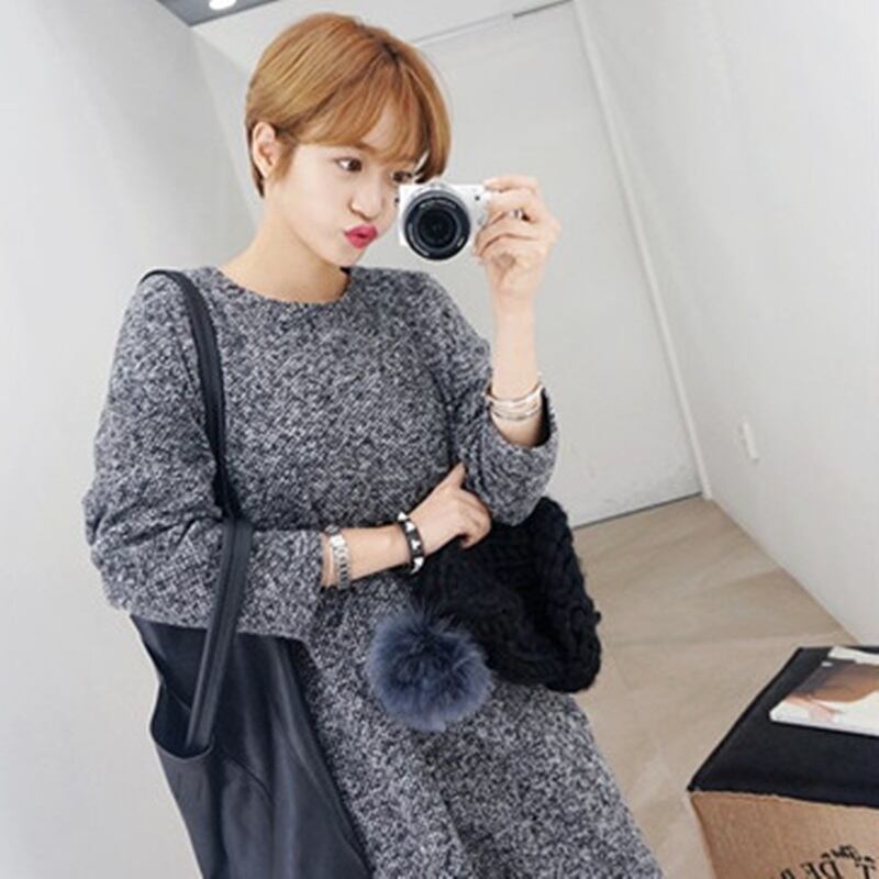 長袖 タイト ワンピース ミディアム丈 クルーネック 無地 カジュアル系