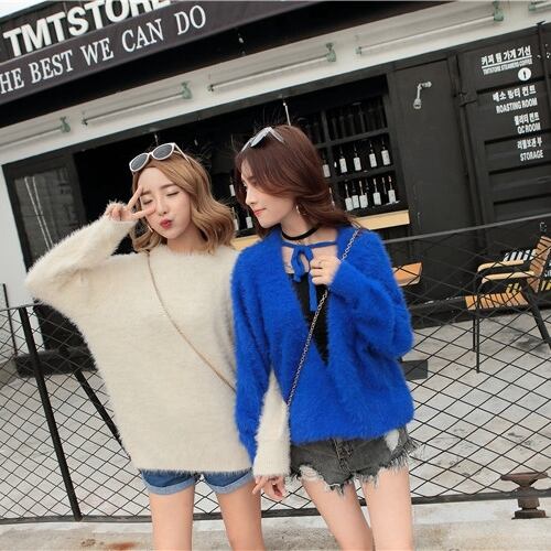 無地 ニット トップス きれいめ Vネック ラウンドネック 長袖 セーター