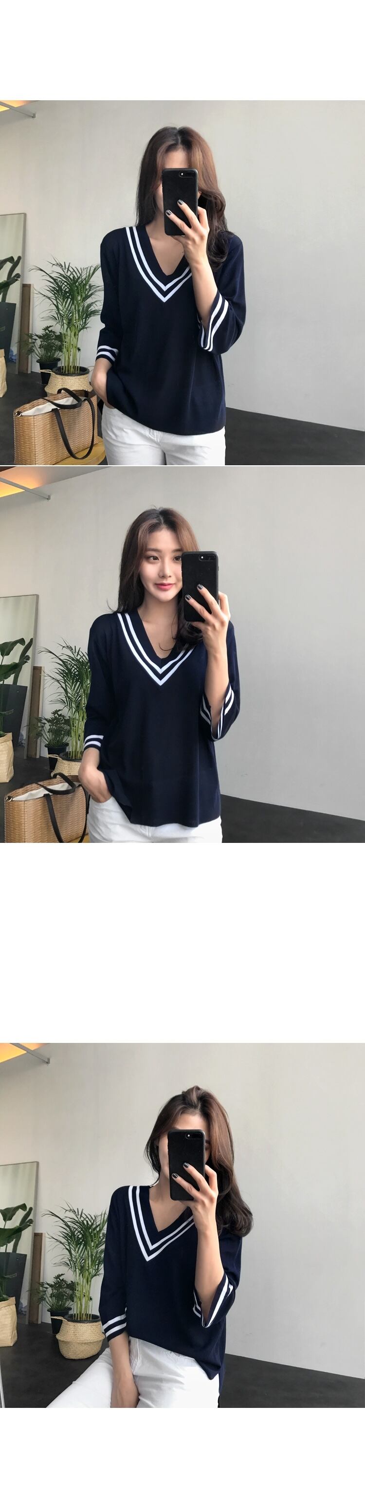 かわいい カジュアル ミディアム 七分袖 Vネック ストリート バイカラー トップス