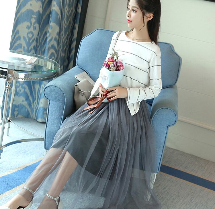 ニットのボリュームをふんわりとしたチュールスカートがカバーしてくれる☆